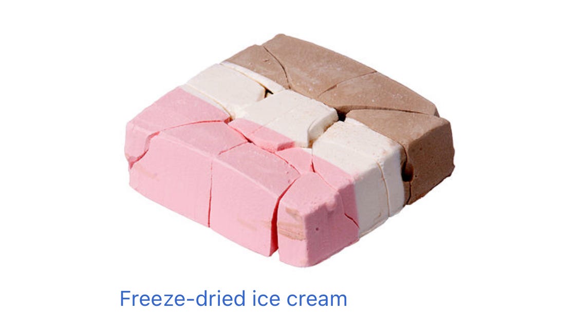 Wikipedia page for “Freeze-dried ice cream.”