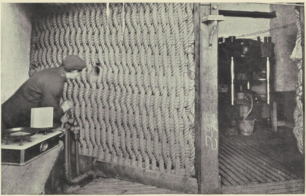 “Workman operating a guncotton press behind a protective rope screen, 1909,” in Wikipedia page for “Cellulose".